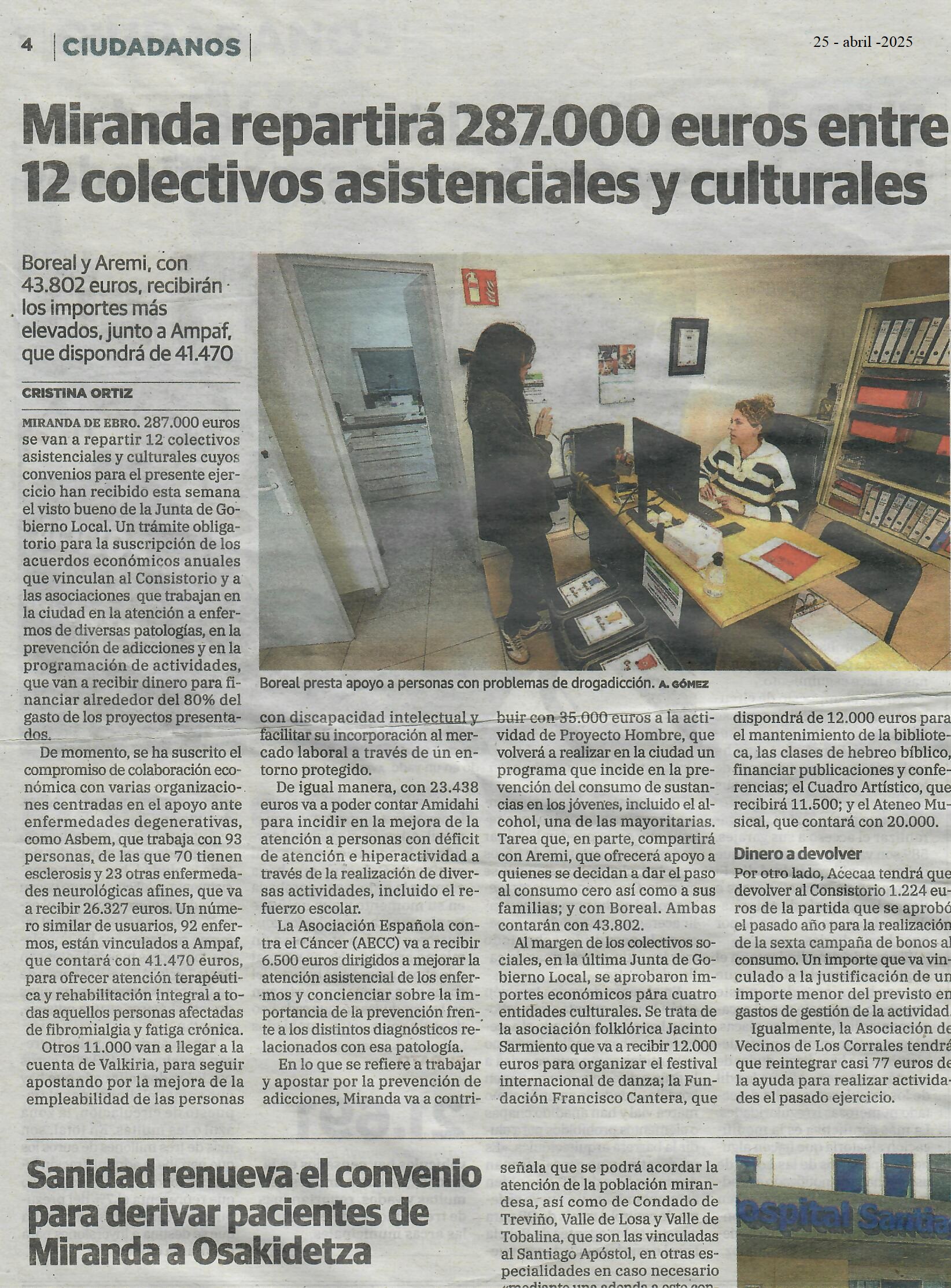 2013 - El Correo - Marcha a Bujedo (Memorial Rufino) 2013 - El Correo - Entrevista a participantes en Mesa Redonda 2013 - El Correo - Mesa Redonda en la Casa de Cultura (Memorial Rufino) 2013 - Diario de Burgos - Entrevista a Rafa (Memorial Rufino) 2013 - El Correo - Convenio para desarrollar el Plan Municipal sobre Drogas 2013 - El Correo - Fiesta de las Asociaciones 2013 2013 - El Correo - Venta de Programas2013 - El Correo - Entrevista a AREMI 2013 - El Norte de Castilla - Reseña de la ayuda concedida por La Caixa