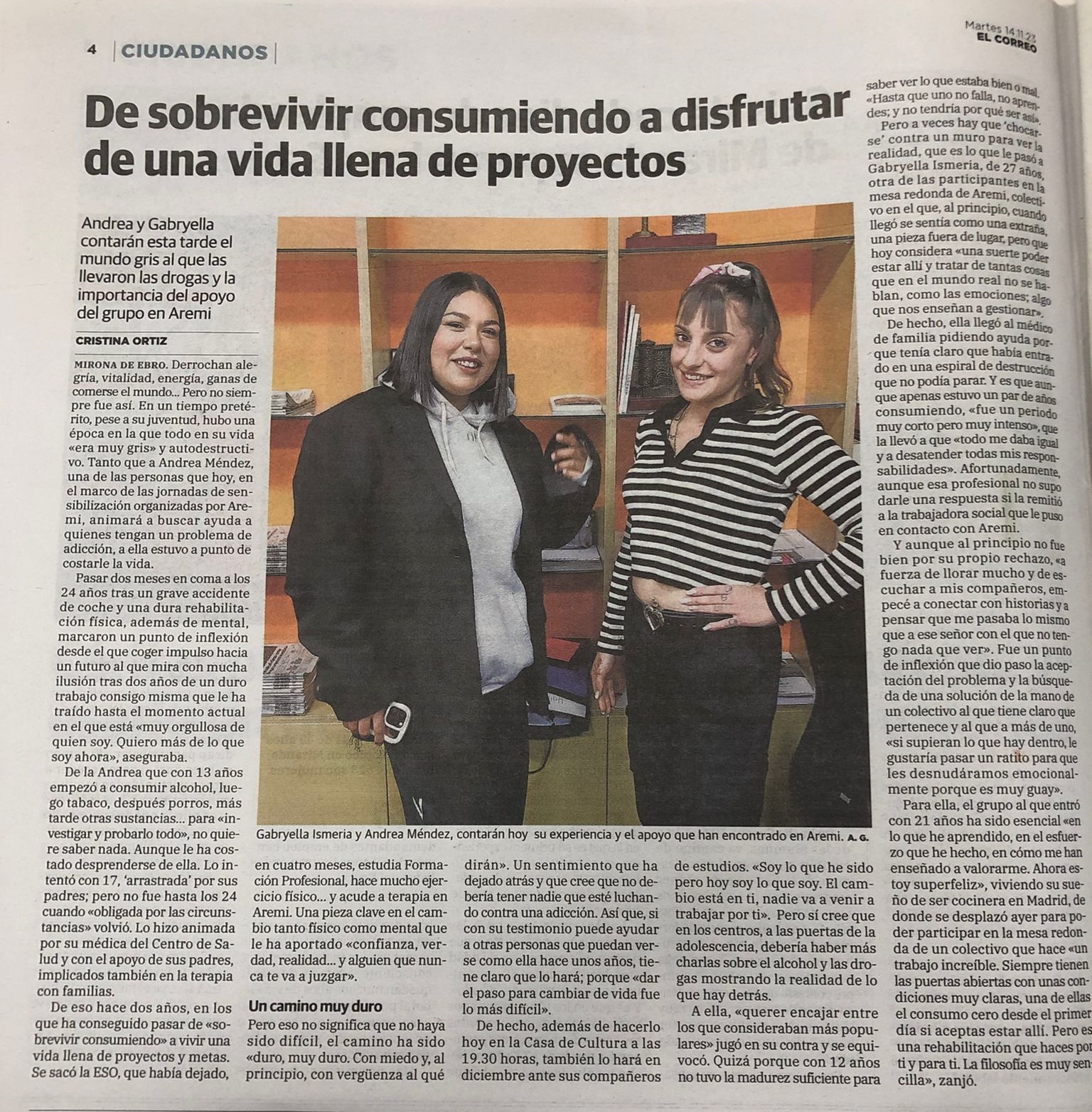 2006 El Correo - Charlas de prevención 2006 El Correo - Campaña "No nos la juegues" 2006 El Correo - Mujeres en AREM 2006 ASEREX - 20 años de AREMI 2006 El Correo - Aremi ha ayudado en su rehabilitación a más de 2.000 alcohólicos en dos décadas 2006 El Correo - Creación del Programa de Prevención en Empresas 2006 El Correo - Prpgrama de Prevención en Empresas 2006 El Correo - Politoxicómanías - Entrevista a Rafa Sánchez 2006 El Correo - Campaña Publicitaria "No nos la juegues" 2006 El Correo - Entrevista a Rafa Sánchez (Navidad) 2006 Drogomedia - Junta y empresarios respaldan un proyecto contra el alcoholismo 2006 El Correo - Memorial Rufino. Teatro "Ligeros de equipaje" 2006 El Correo - Charla ·La prevención del alcoholismo en la mujer (ADEME) 2006 El Correo - Aremi previene en las empresas sobre los efectos del alcoholismo