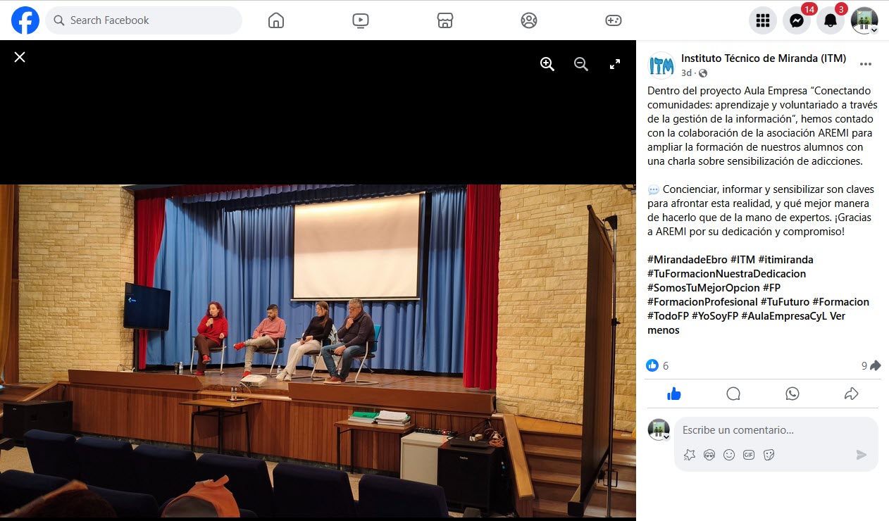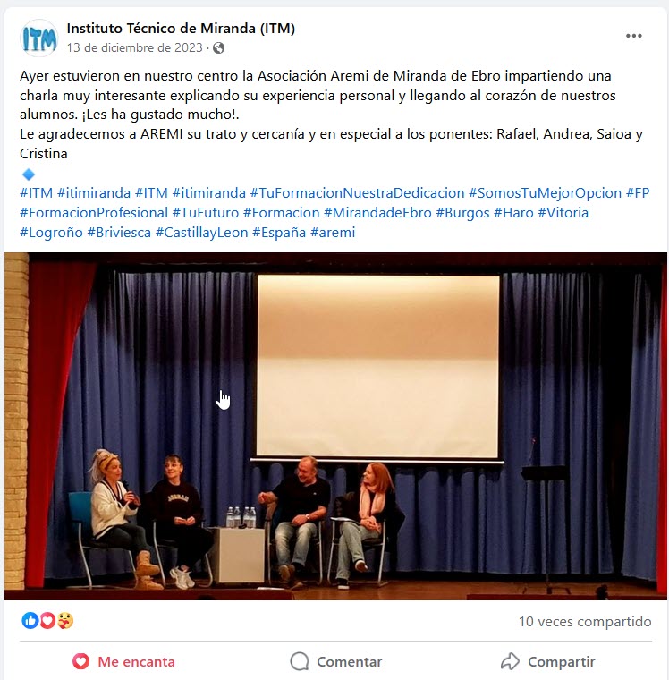 Como viene siendo habitual desde hace ya unos años, nuestra asociación ha acudido al Instituto Técnico de Miranda (ITM) para llevar a cabo una charla informativa sobre nuestro trabajo en el campo de las adicciones.